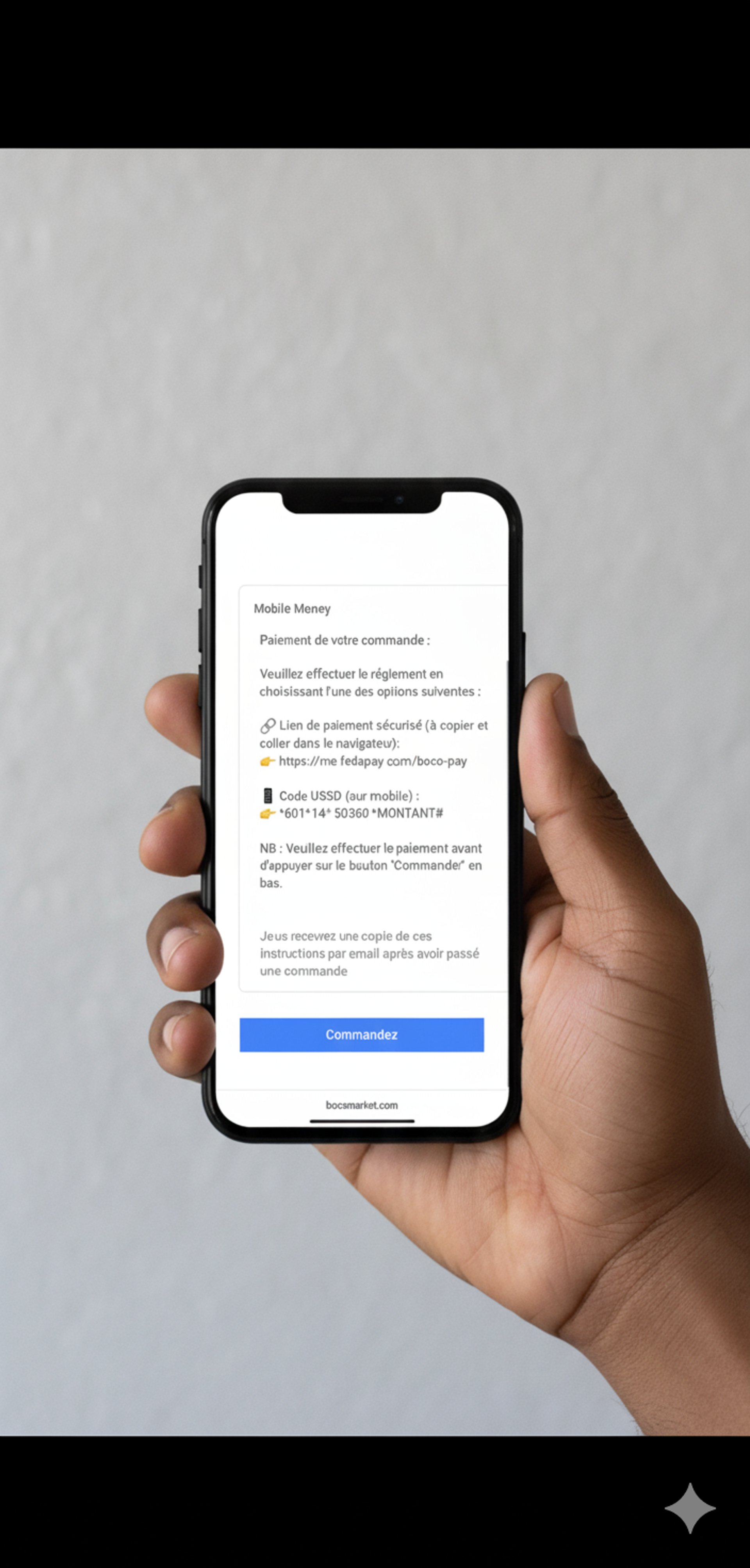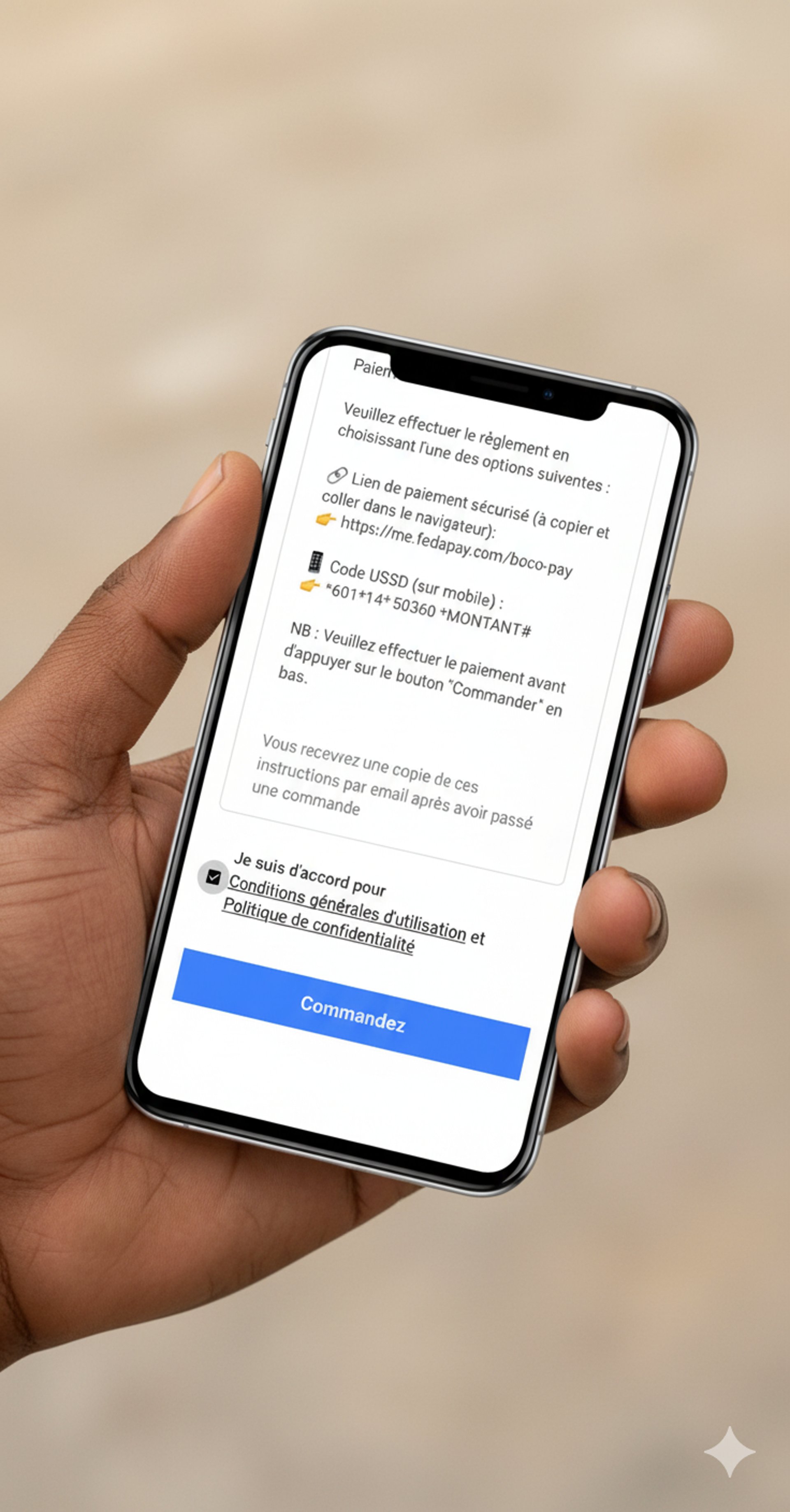 Découvrez comment passer votre commande en quelques clics, choisir votre mode de livraison et sécuriser votre paiement par Mobile Money / Moov Money / Orange Money.